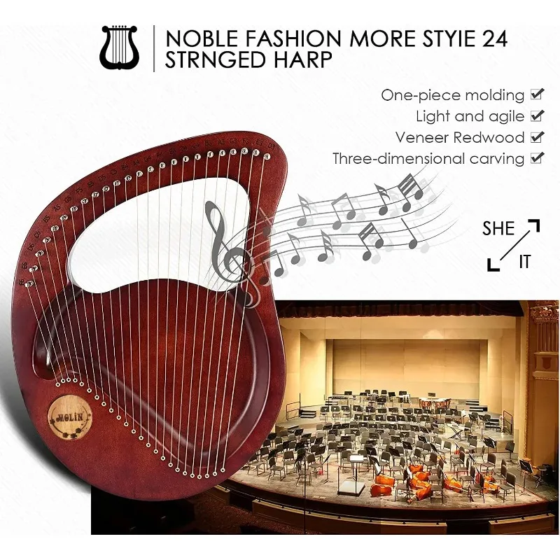 When a bard takes the stage, silence follows. The air hums with expectation, and the first note from your 24-String Lyre Harp cuts through the stillness like a spell.